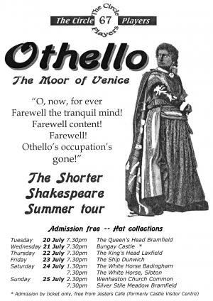 Performed at Bramfield Queen's Head on 20 July, Bungay Castle on 21 July, Laxfield King's Head on 22 July, Dunwich Ship on 23 July, Badingham White Horse & Sibton White Horse on 24 July and Wenhaston Church Common & Silverstile Meadow Bramfield on 25 July.