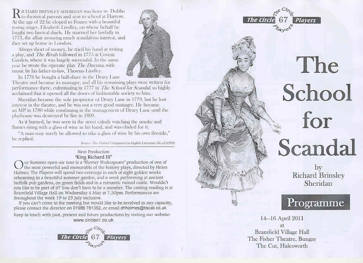 Performed at Bramfield Village Hall on 14 April, The Fisher Theatre Bungay on 15 April and The Cut Halesworth on 16 April 2011.