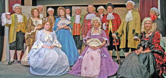 The final night was at The Cut in Halesworth where the more spacious changing facilities and wing areas made all the off-stage work less stressful and allowed the cast to concentrate on their parts. A full house got the juices flowing. It all went with a bang. Everyone got their lines spot on and put everything into making their characters sparkle. Laughs came a-plenty from the audience and the curtain-call applause confirmed that we had delivered a memorable night of entertainment.